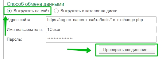 - адрес: https://адрес_вашего_сайта/tools/1c_exchange.php